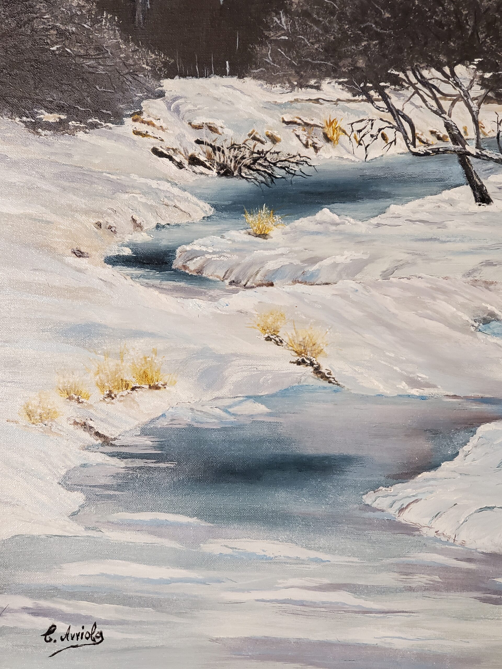 dried grass poke out like shy guests at a chilly party. Painting this one felt like catching winter’s quiet breath right before
